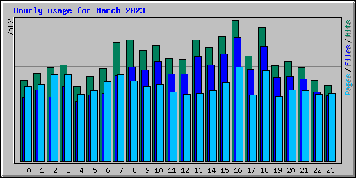 | Hour | Hits | Files | Pages | KBytes | ||||||||